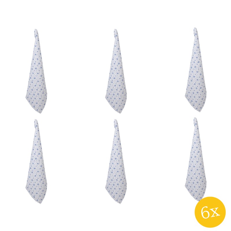 Clayre & Eef Theedoek set van 6 stuks 50x70 cm Wit Blauw Katoen Rechthoek Roosjes Keukenhanddoek