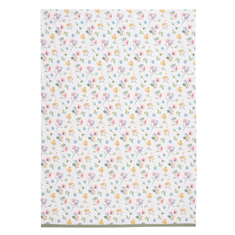 Clayre & Eef Theedoek set van 6 stuks 50x70 cm Wit Groen Katoen Bloemen Keukenhanddoek