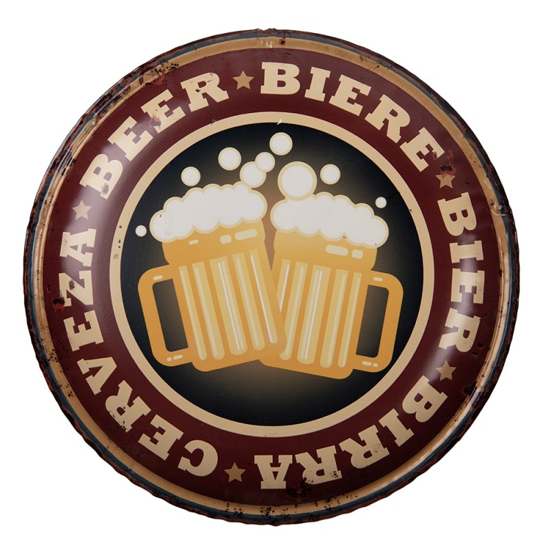 Clayre & Eef Targhetta con testo Ø 35 cm Rosso Giallo Ferro
