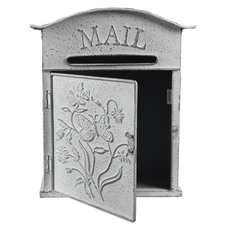 Clayre & Eef Buca delle lettere 26x10x31 cm Grigio Bianco Metallo Fiori