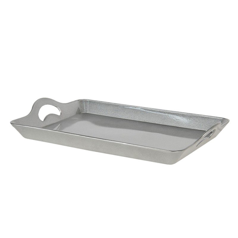 Clayre & Eef Decorazione vassoio 45x32x3 cm Color argento Plastica