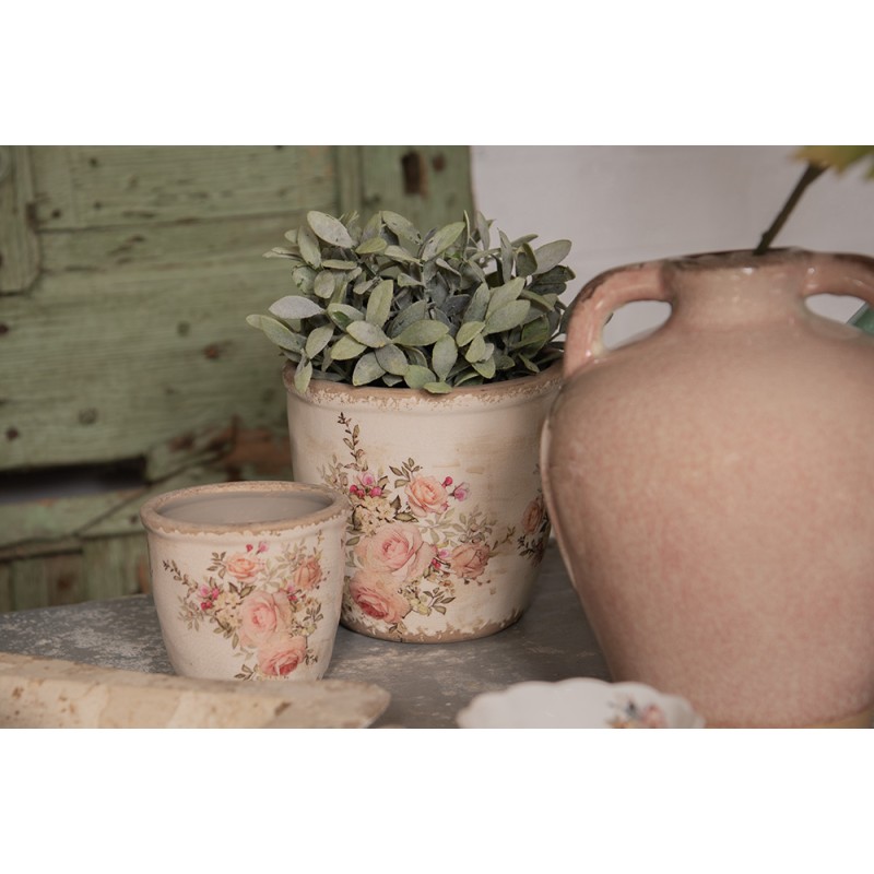 Clayre & Eef Fioriera Ø 11x10 cm Rosa Beige Ceramica Fiori