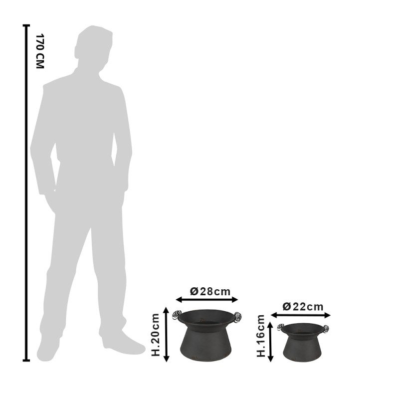 Clayre & Eef Fioriera set di 2 Ø 28 Ø 22 cm Grigio Ferro