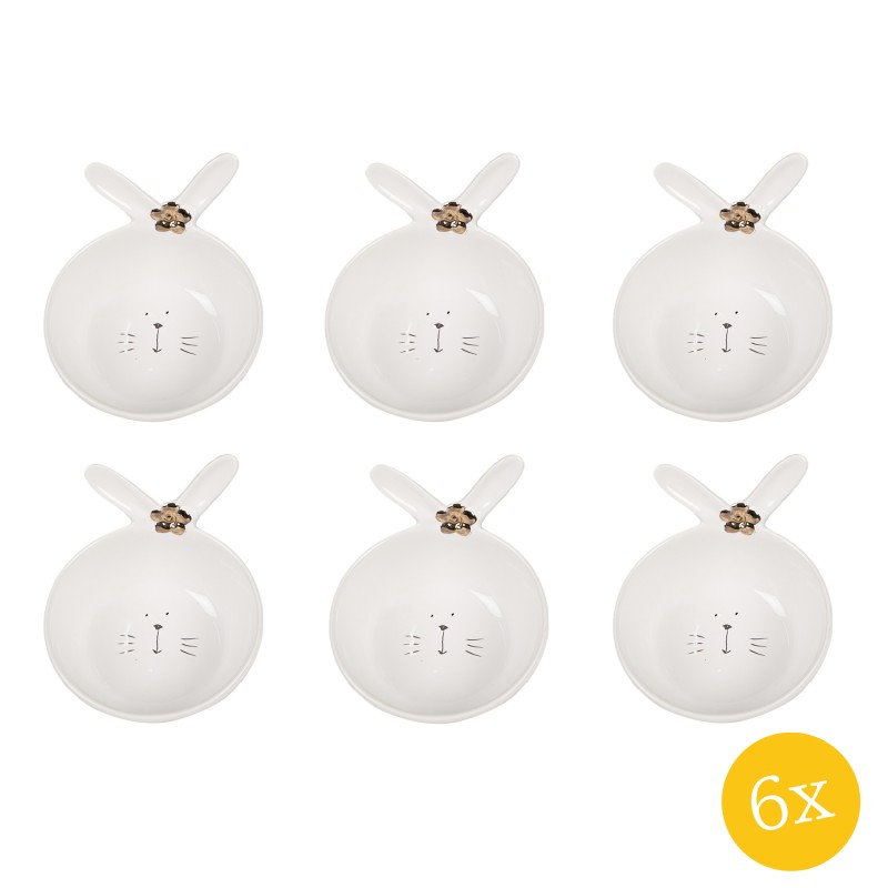 Clayre & Eef Soepkom set van 6 stuks 200 ml Wit Porselein Konijn Serveerkom