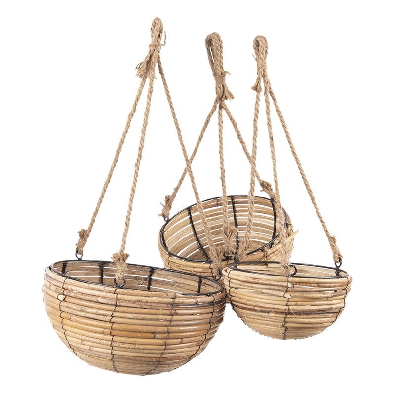 Clayre & Eef Appendi-piante set di 3 Marrone Rattan