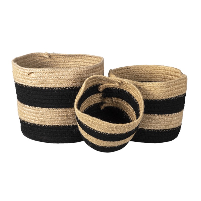 Clayre & Eef Cesto per riporre set di 3 Ø 22 Ø 19 Ø 16 cm Nero Corda