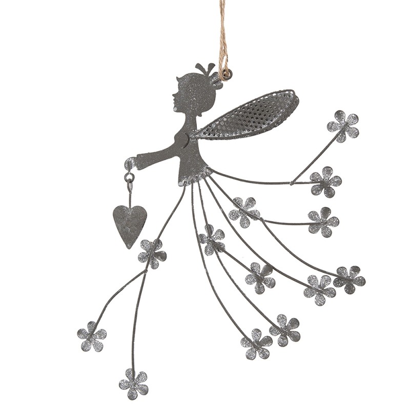 Clayre & Eef Decorazione pendente Fata 20 cm Grigio Metallo
