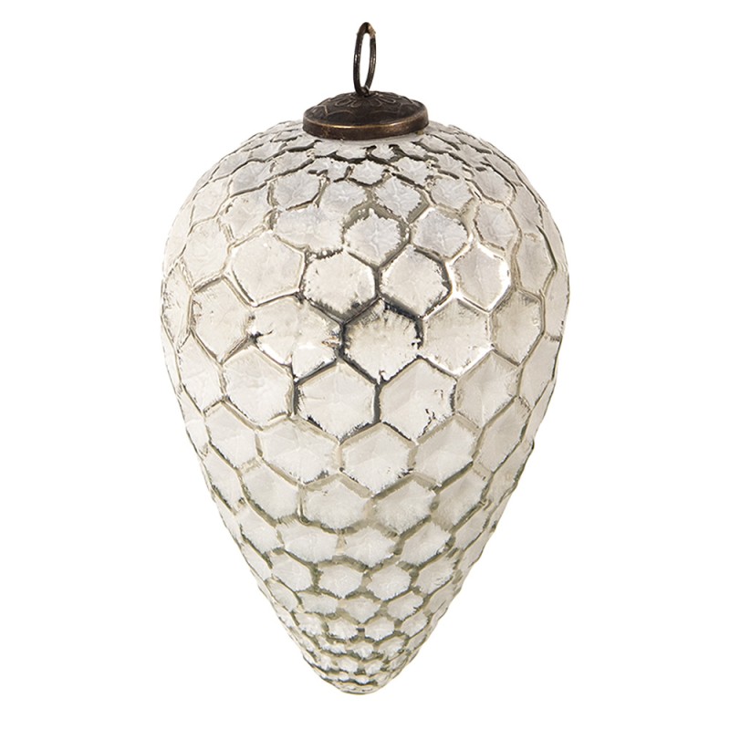 Clayre & Eef Palla di natale XL Ø 13 cm Bianco Color argento Vetro