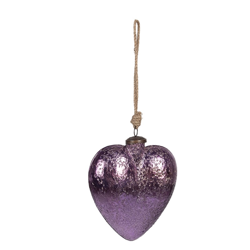 Clayre & Eef Palla di natale Cuore 9 cm Viola Vetro