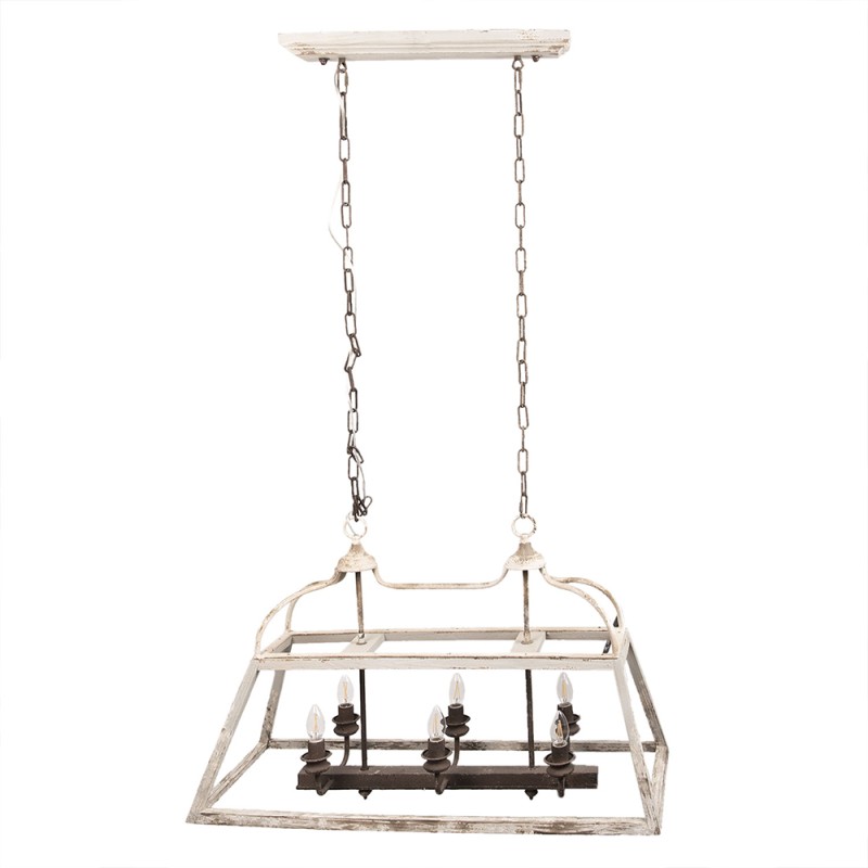 Clayre & Eef Lampada a Sospensione 87x35x60 cm Bianco Marrone Legno