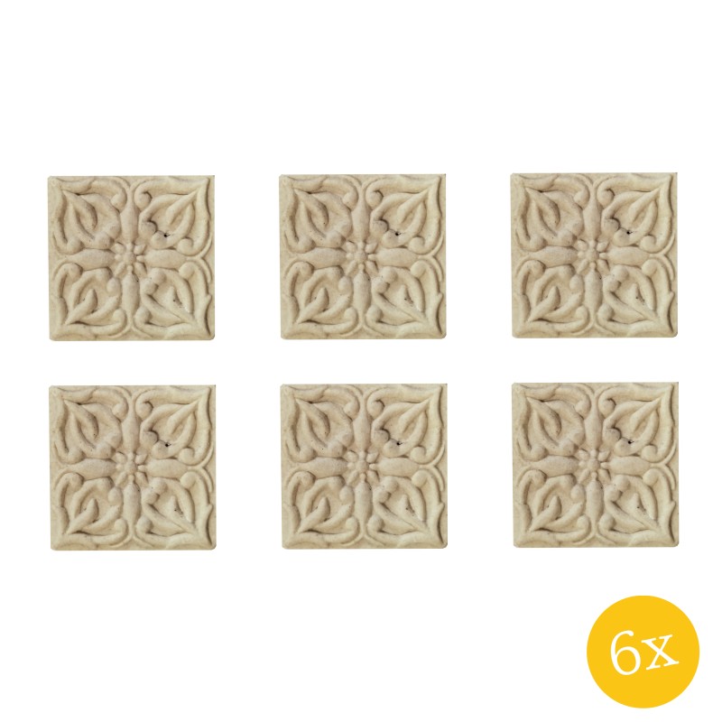 Clayre & Eef Deurknop set van 6 stuks 4x4 cm Beige Keramiek Vierkant Meubelknop