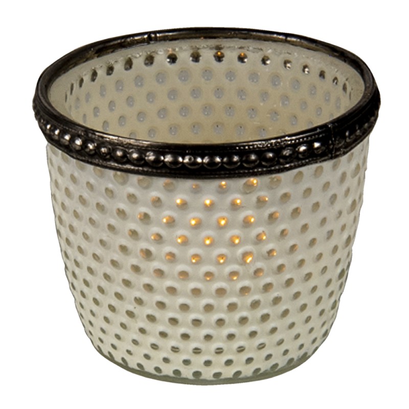 Clayre & Eef Portacandela Ø 7x6 cm Bianco Vetro