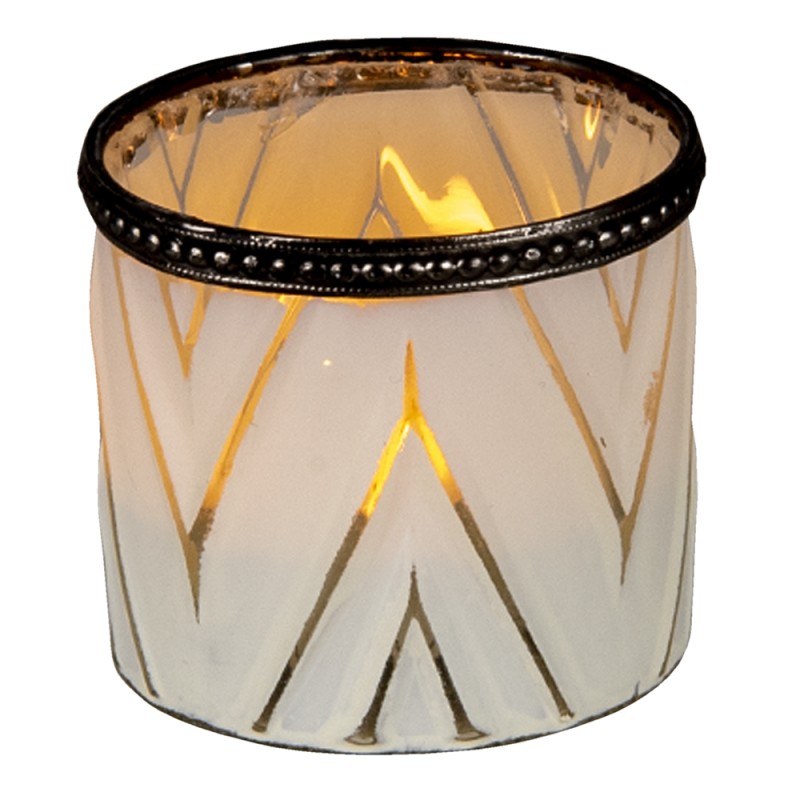 Clayre & Eef Portacandela Ø 8x7 cm Bianco Vetro