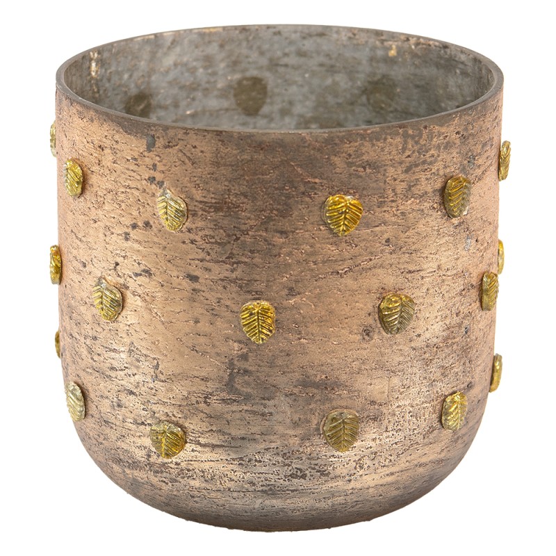 Clayre & Eef Portacandela Ø 13x13 cm Color oro Vetro Foglie