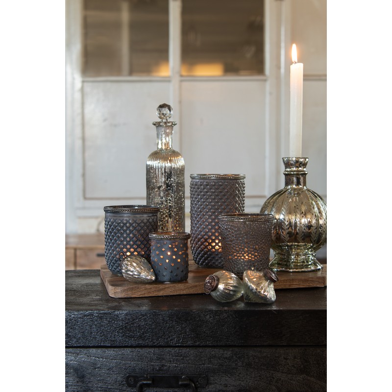 Clayre & Eef Portacandela Ø 9x10 cm Grigio Vetro