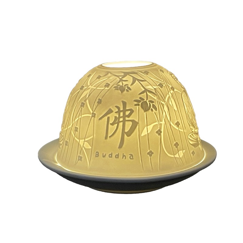 Clayre & Eef Portacandela Ø 12x8 cm Bianco Porcellana Buddha