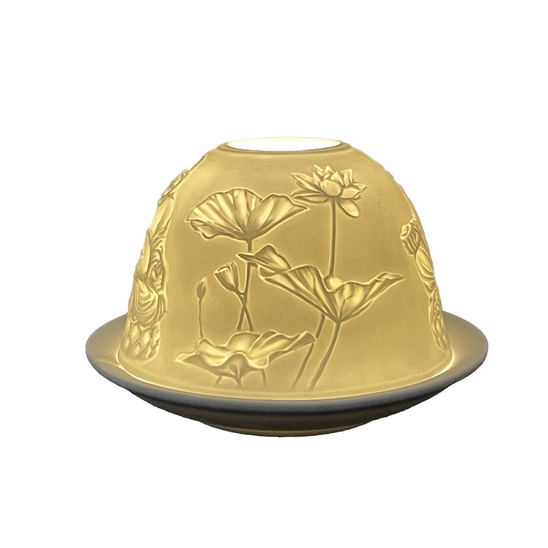 Clayre & Eef Portacandela Ø 12x8 cm Bianco Porcellana Buddha