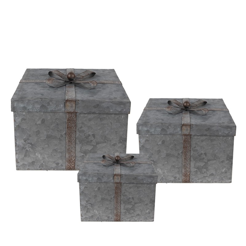 Clayre & Eef Scatola di archiviazione 24x24x18 cm Grigio Metallo