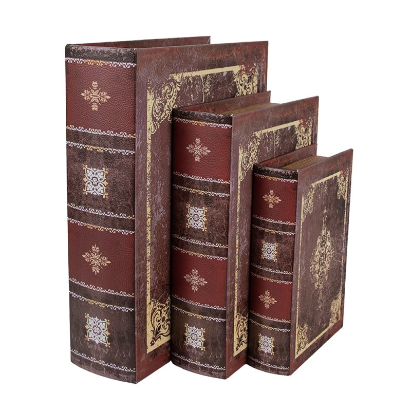 Set di scatole di immagazzinaggio molto bello, realizzato a forma di libro. Splendidamente eseguito in stile vintage di colore marrone. Questo è il libro decorativo perfetto per riporre oggetti sparsi. Elegante e originale!