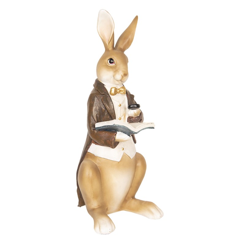 Clayre & Eef Statuetta Coniglio 15x13x40 cm Beige Marrone Plastica