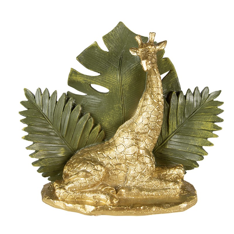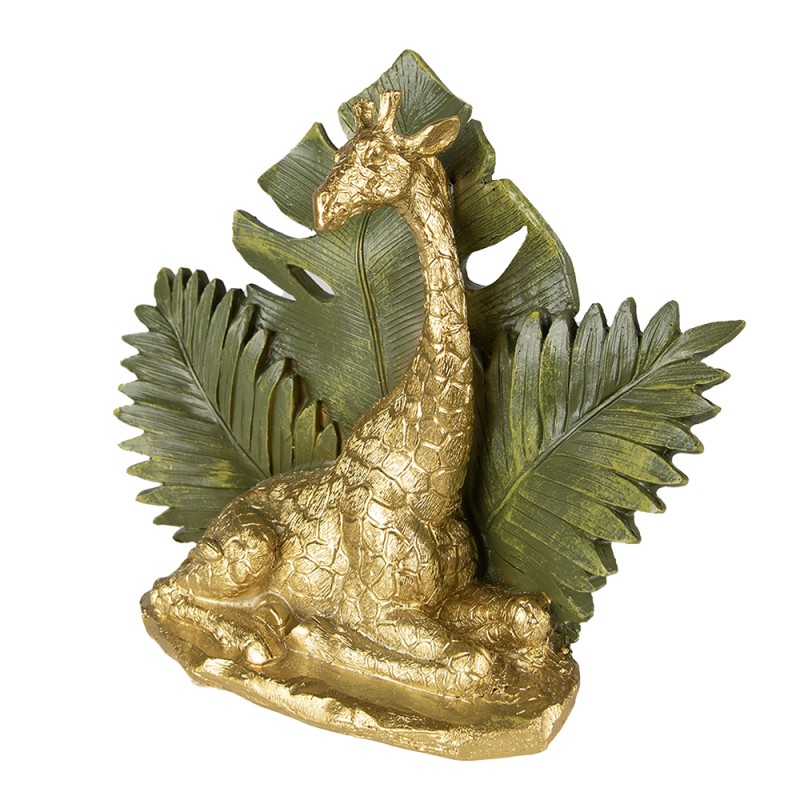 Clayre & Eef Statuetta Giraffa 19 cm Color oro Verde Poliresina