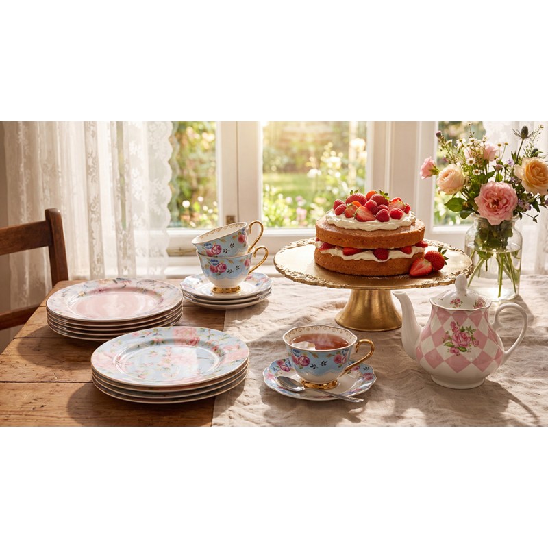 Clayre & Eef Teiera 1000 ml Rosa Bianco Porcellana Rose