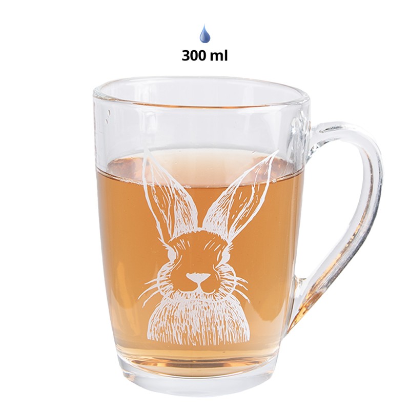 Clayre & Eef Theeglas 300 set van 6 stuks 300 ml Transparant Glas Konijn Theemok