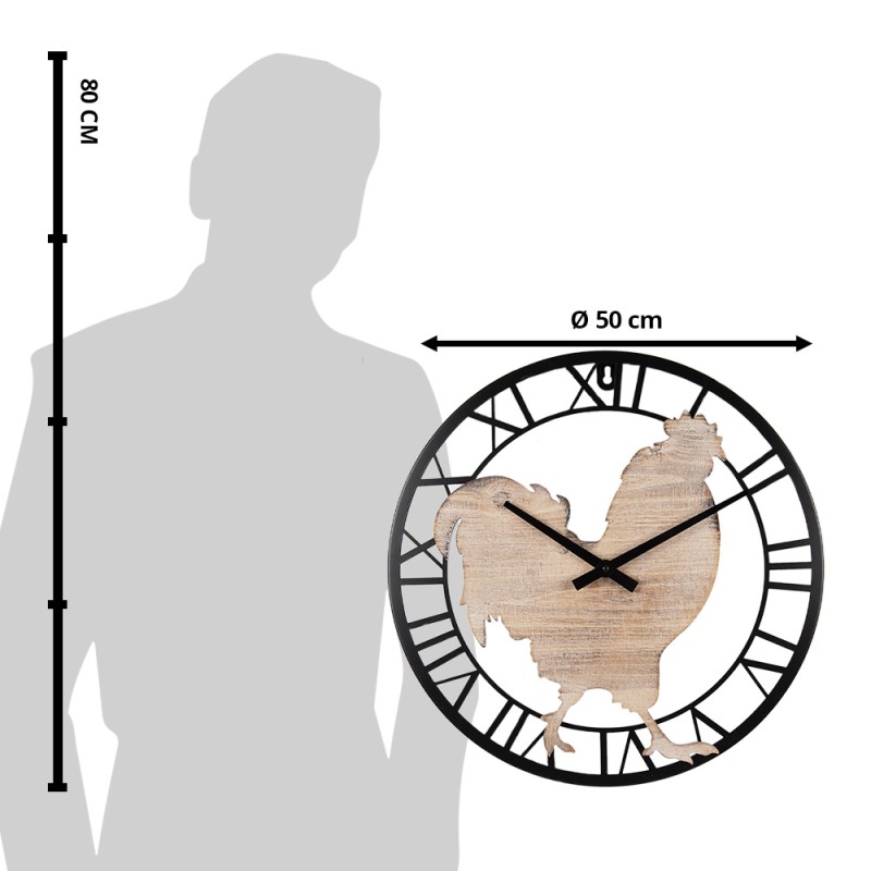 Clayre & Eef Orologio da parete Ø 50 cm Marrone Nero MDF Pollo
