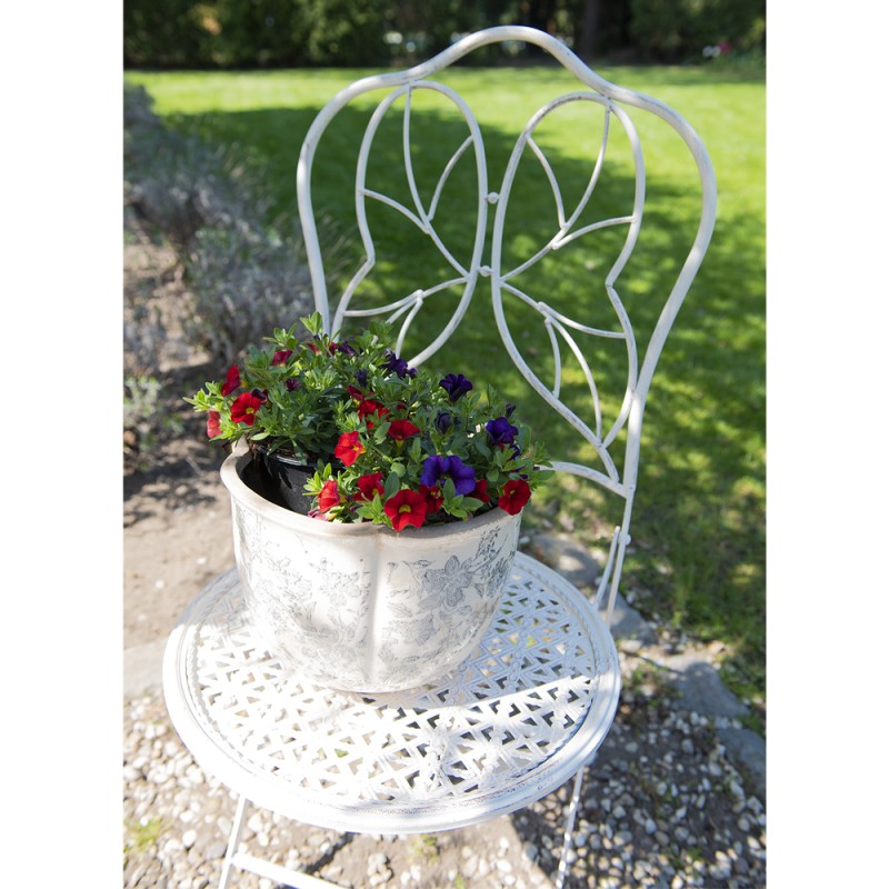 Mooi voor binnen, maar in de zomer ook voor buiten, decoratieve grijs met beige keramieken bloempot met een bloemenmotief, in een landelijke stijl, van het merk Clayre & Eef.