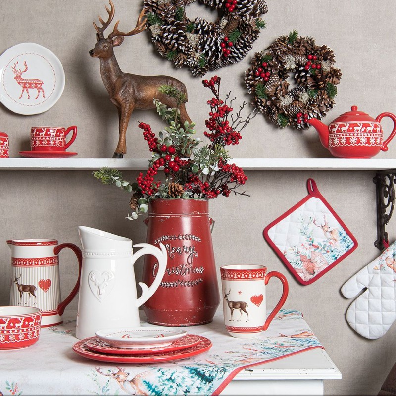 Tafelen met Kerst wordt vanzelf een sfeervol feest met deze uitgebreide textielserie. De prachtig geïllustreerde herten en naaldbomen geven een frisse kijk op de traditionele kerstsfeer. De tafelkleden, keukendoeken, keukenschorten, broodmanden, pannenlappen en ovenhandschoenen zijn mooie voorbeelden van items uit deze serie. Het bijpassende servies zal de Kersttafel compleet maken en zal zorgen voor een onvergetelijke Kerst. Merry Christmas!