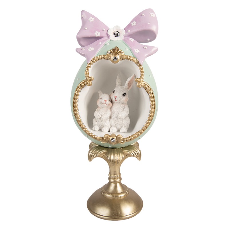 Het decoratie ei is uitgevoerd in een zachte blauwe tint, waardoor het een frisse en luchtige uitstraling heeft. De delicate konijntjes die rondom het ei zijn afgebeeld, brengen een gevoel van lente en vrolijkheid mee in uw huis. Dit beeld is niet alleen een mooie aanvulling op uw decor, maar ook een geweldig gespreksonderwerp voor uw gasten. De combinatie van het ei en de konijntjes symboliseert nieuw leven en groei, wat het perfect maakt voor verschillende gelegenheden en seizoenen.