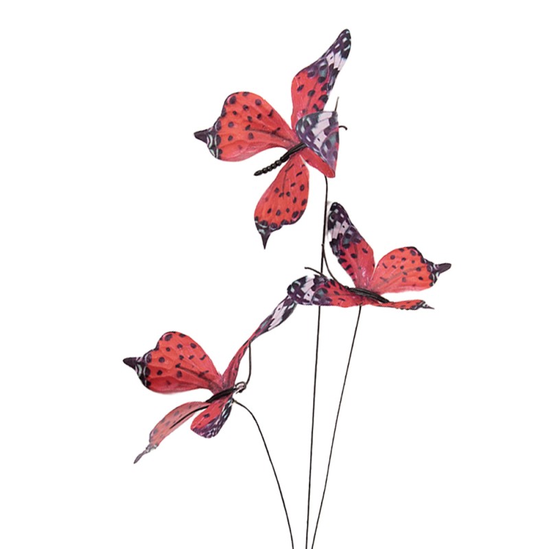 Clayre & Eef Decoratie Tak Vlinder 10x10x65 cm Rood Textiel