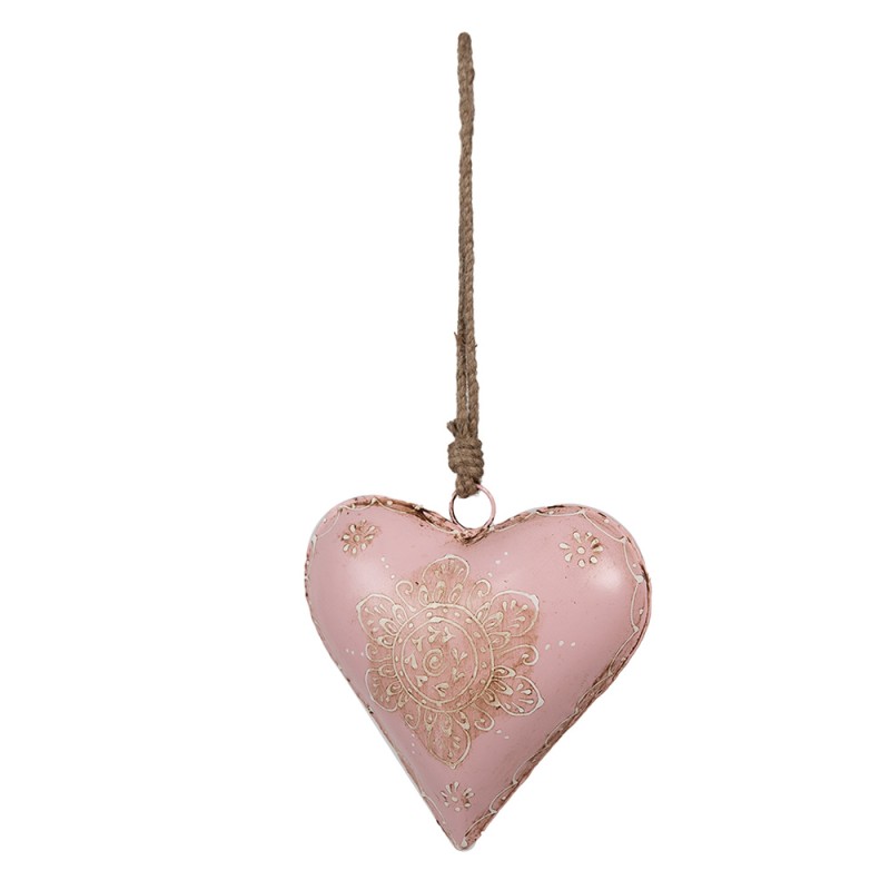 Clayre & Eef Kersthanger Hart 15x5x15 cm Roze IJzer Bloem