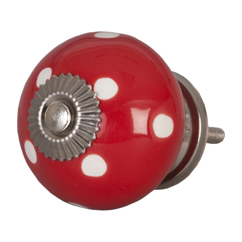 Clayre & Eef Deurknop Ø 4 cm Rood Wit Keramiek