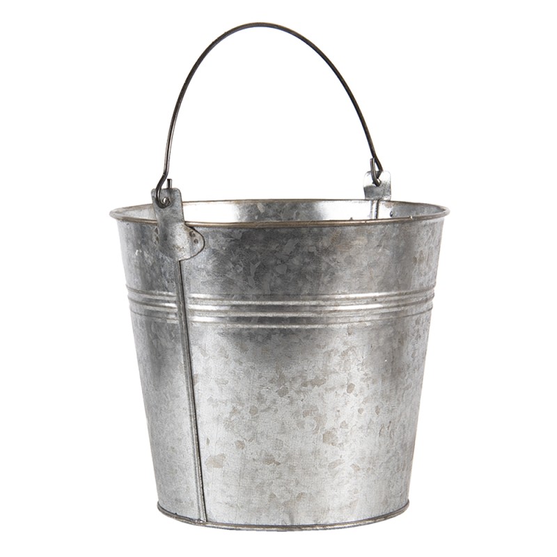 Clayre & Eef Decoratie Emmer Ø 18x16/26 cm Grijs Zink
