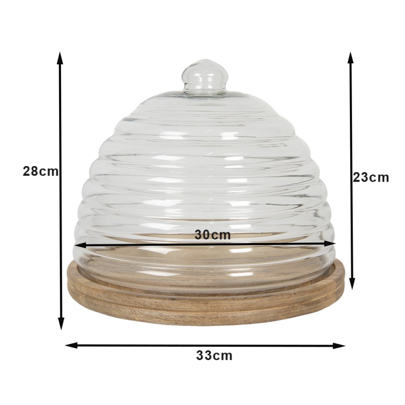 DECORATIEF GLAZEN STOLP: Onze glazen bel is 28 cm in hoogte (inclusief de basis) en heeft een totale basis diameter van 33 cm. De binnen diameter van het glas is 30 cm. De totale hoogte van het glas (exclusief basis) is 23 cm.