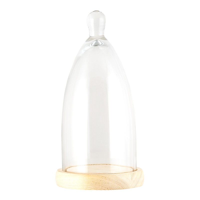 HOUTEN BASIS: De basis van de stolp is gemaakt van MDF of hout. Het heeft groeven om de glazen pot in te passen, zodat deze niet kan verschuiven of wiebelen.