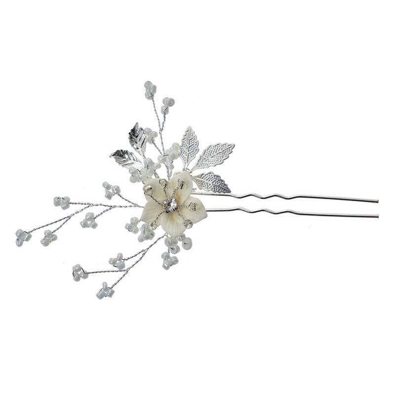Een echte blikvanger in jouw kapsel, prachtige haarspeld in zilverkleur met bloemen. Het creëert een charmante compositie en ziet er prachtig uit in elk kapsel. Ideaal voor bruilofts- of communiehairstyles.