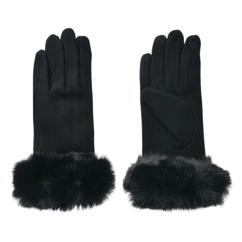 Clayre & Eef Handschoenen met imitatiebont 9x23 cm Zwart Polyester