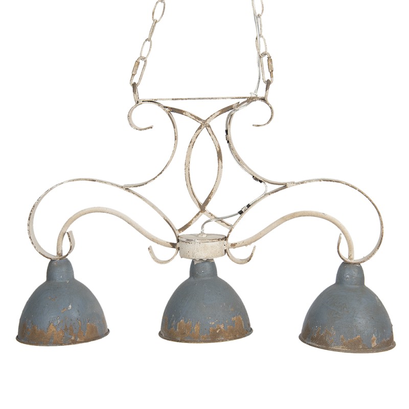 Deze landelijke ijzeren hanglamp met 3 lichtpunten van het merk Clayre & Eef heeft een distressed finish. De stoere verlichting boven je eettafel of in de keuken.