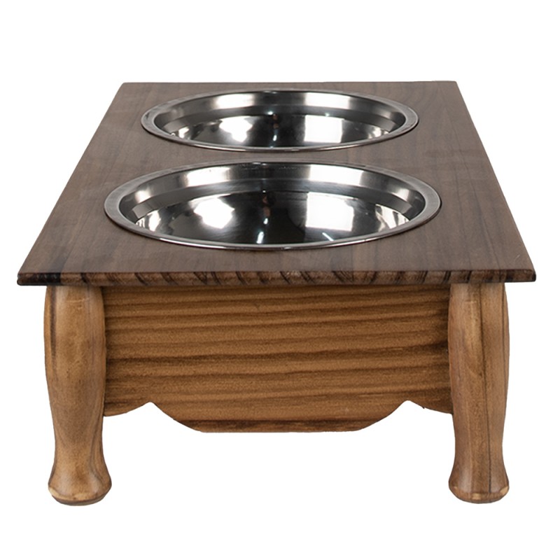 Clayre & Eef Voerbak hond 2x500 ml Bruin Hout