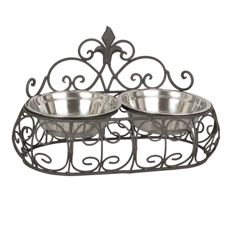 xVoer/Drinkbakken van het merk Clayre & Eef. xKrullen/Ornamenten als motief in een landelijke stijl met een vintage uitstraling. xGeschikt voor honden en katten. Voerbak Kat Voerbak Voederbak