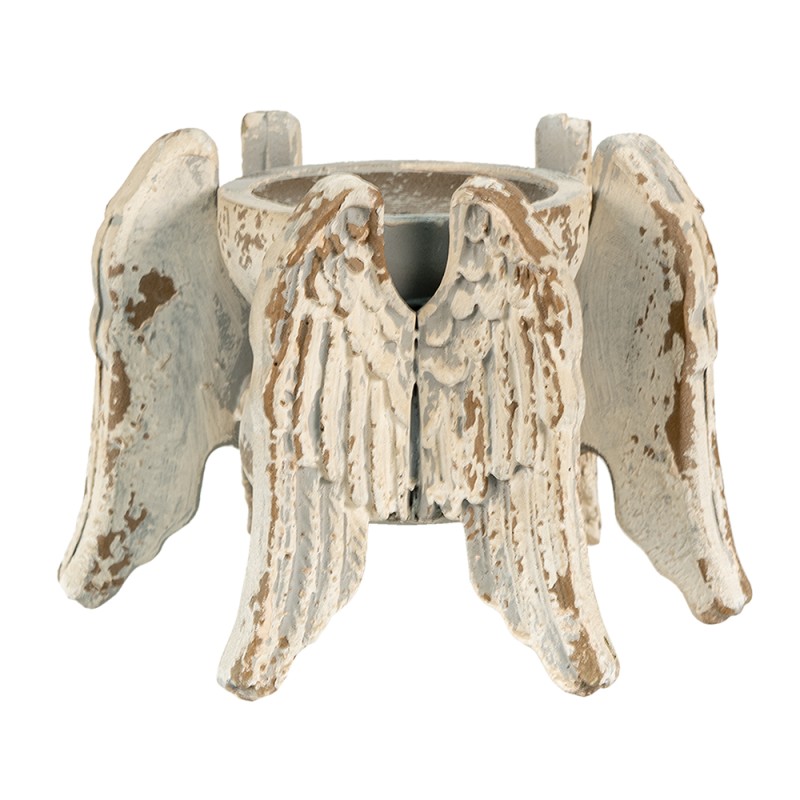 Clayre & Eef Kandelaar Vleugels 21x19x15 cm Grijs Beige Hout