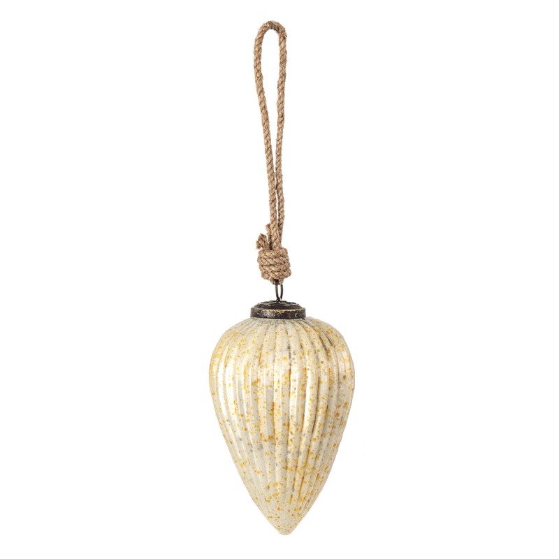 Clayre & Eef Kerstbal Ø 7 cm Wit Geel Glas