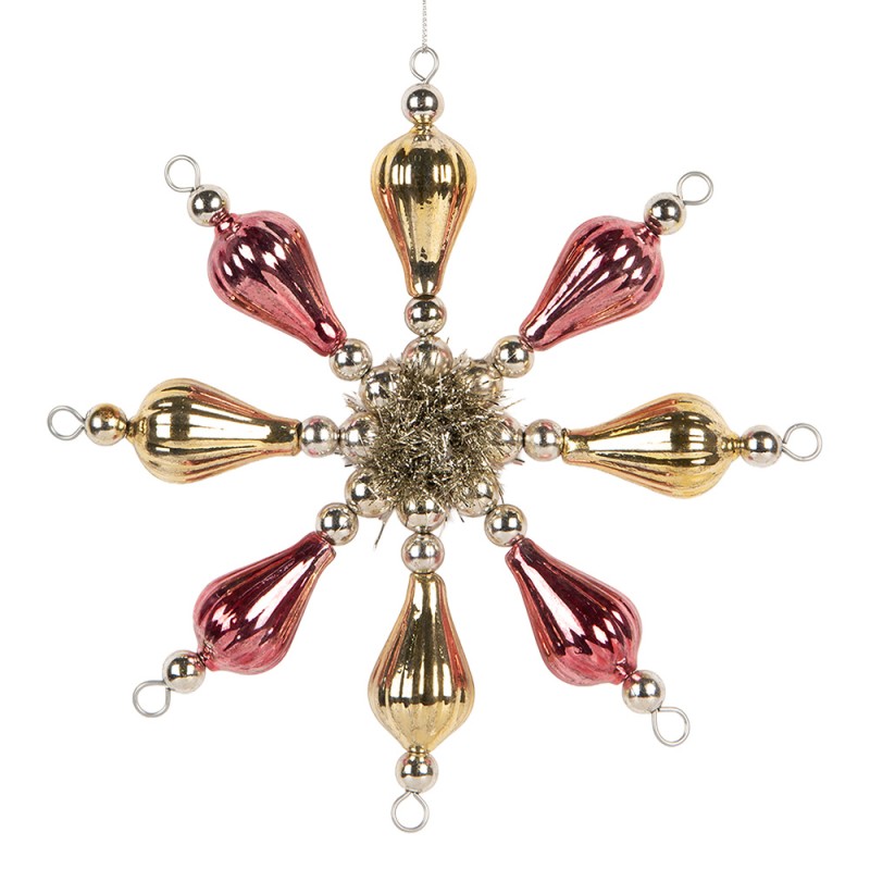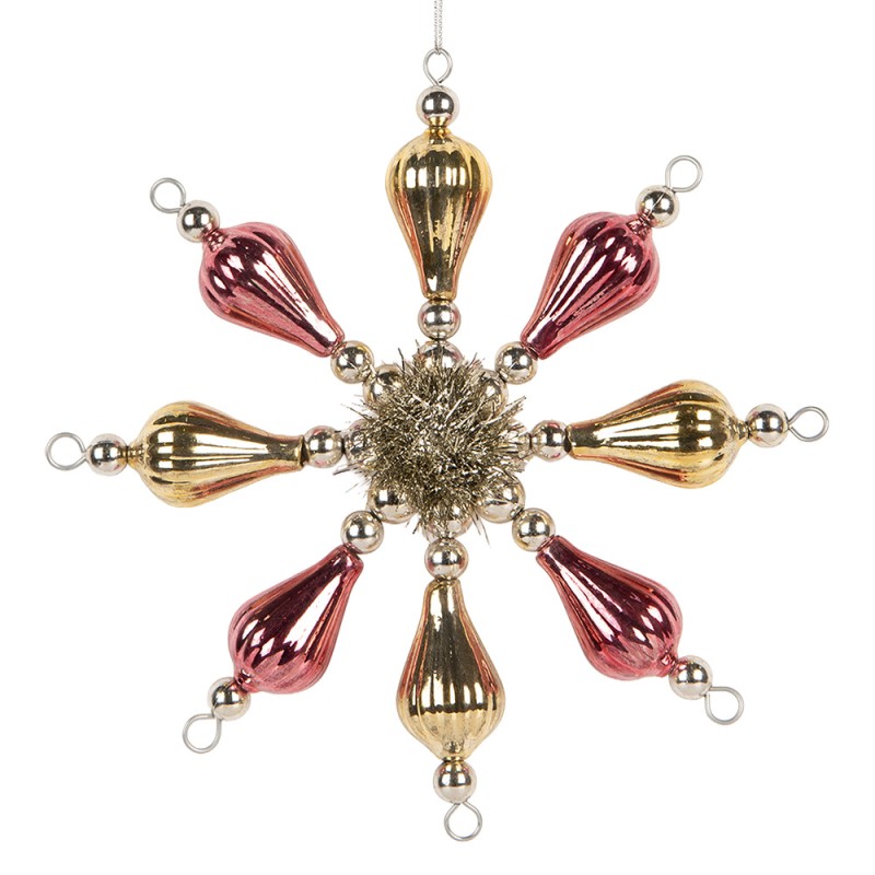 Clayre & Eef Kersthanger 16x3x16 cm Roze Glas