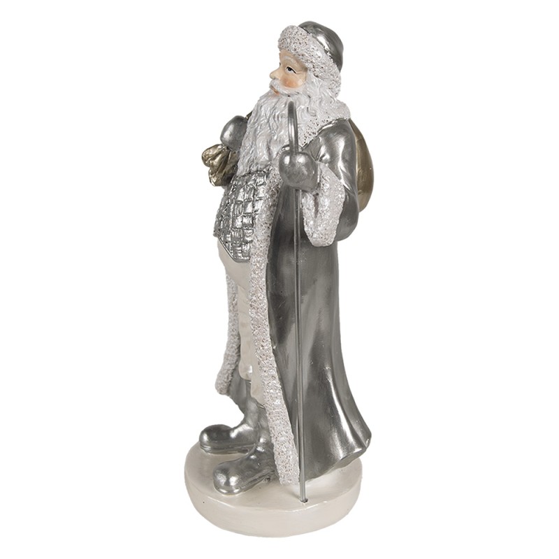 Clayre & Eef Kerstdecoratie Beeld Kerstman 20 cm Zilverkleurig Kunststof
