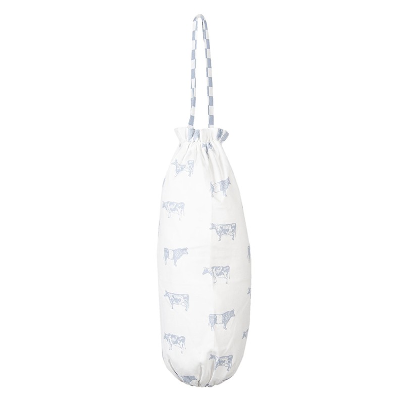 Clayre & Eef Tassenopberger 23x48 cm Blauw Wit Katoen Koeien
