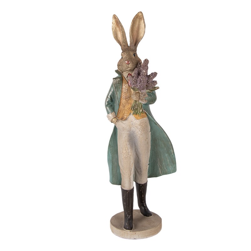 Clayre & Eef Decoratie Beeld Konijn 17x15x53 cm Goudkleurig Kunststof