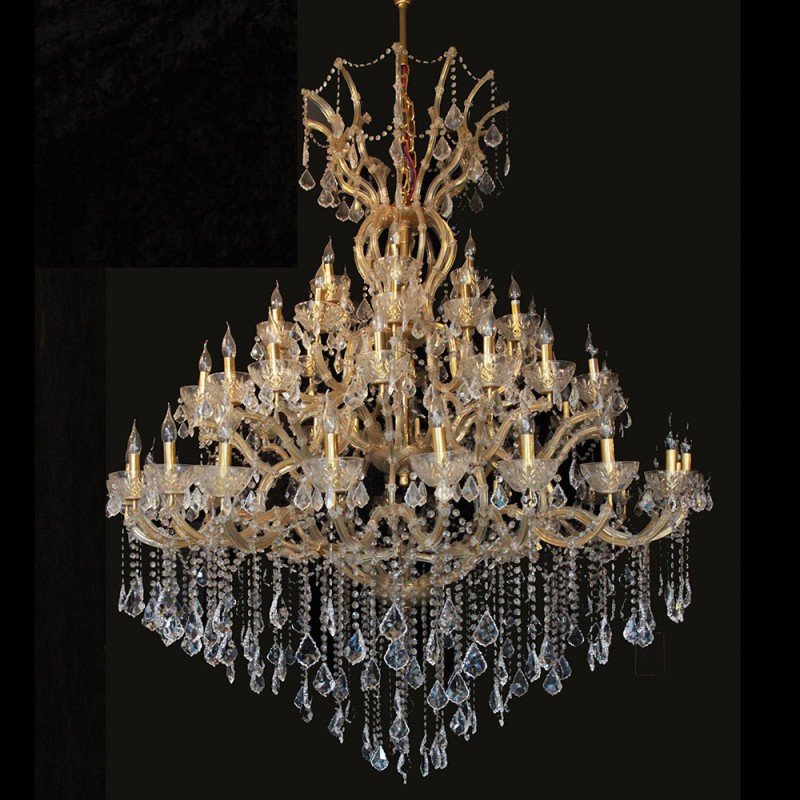 Franse stijl extra grote goudkleurige kristalglas kroonluchter van het merk Lumilamp met 60 lichtpunten.