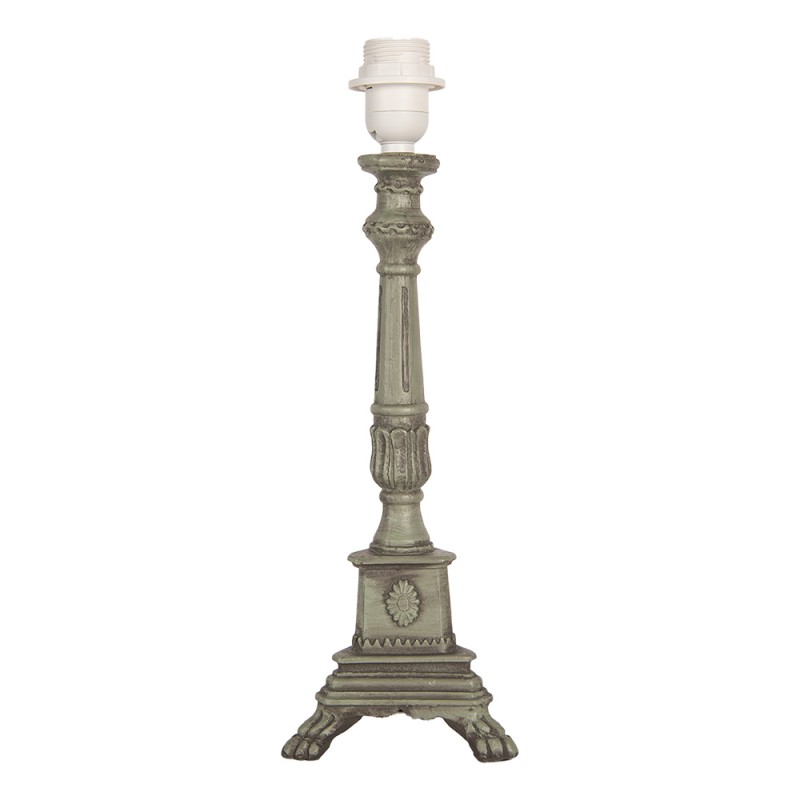 Prachtige groene lampvoet met een brocante uitstraling, een perfecte decoratie voor elk interieur. De voet is gemaakt van hout. Het snoer heeft een lengte van 160 cm en de schakelaar bevindt zich op 52 cm van de lamp.